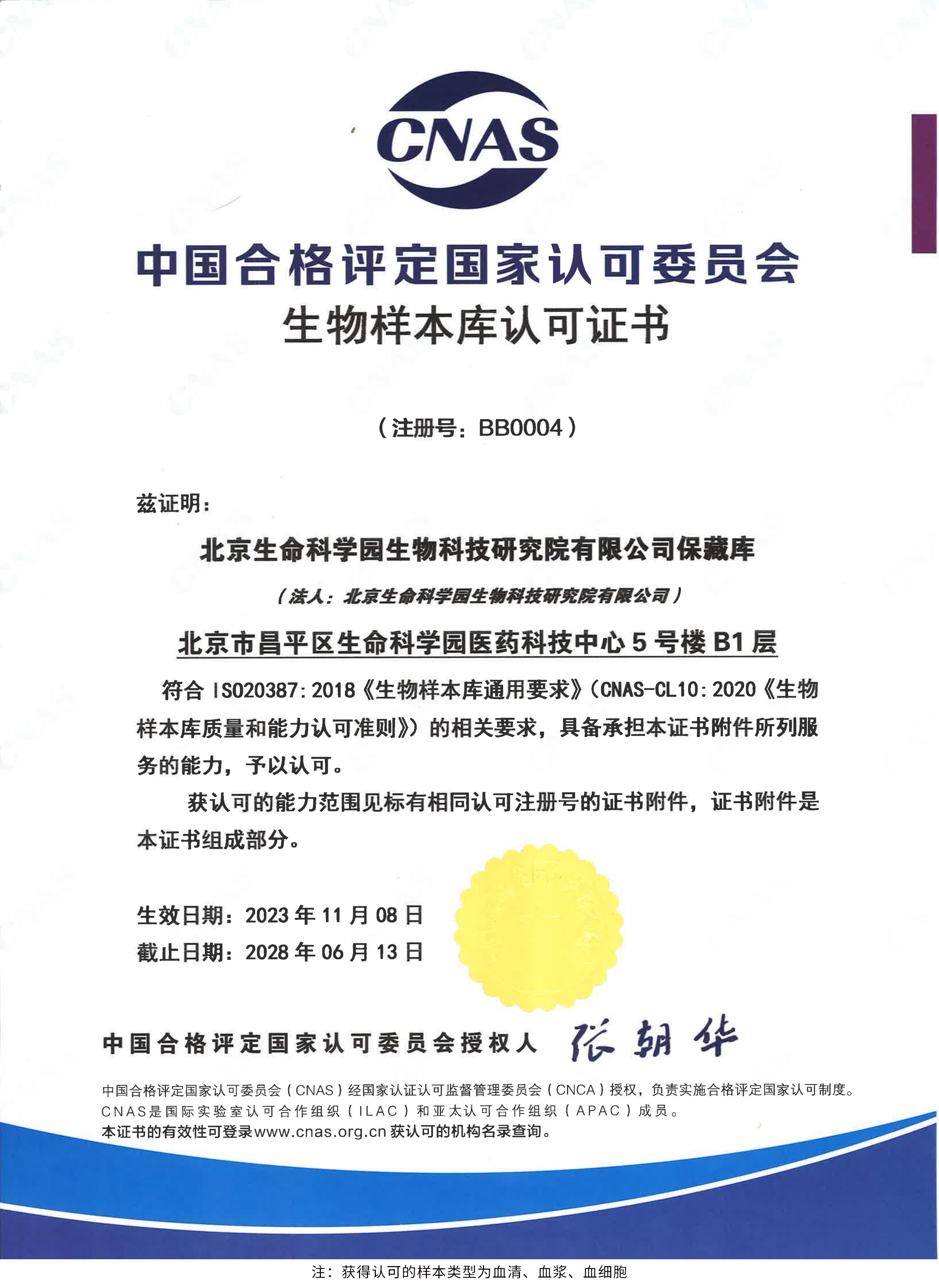 北京生命科學(xué)園生物科技研究院(以下簡(jiǎn)稱“北京生物樣本資源庫(kù)”)(Biobank of Life Science Park,簡(jiǎn)寫(xiě)“BoLSP”)是一家由北京市科委和中關(guān)村生命科學(xué)園共同支持設(shè)立的第三方生物樣本庫(kù)公共服務(wù)平臺(tái),秉承北京重大疾病臨床數(shù)據(jù)和樣本資源庫(kù)(以下簡(jiǎn)稱“北京庫(kù)”)(Beijing Biobank of Clinical Resources,BBCR)十余年的發(fā)展成果,聚合眾多臨床樣本專家的專業(yè)共識(shí),致力于在生命科學(xué)、生物醫(yī)藥研究領(lǐng)域發(fā)揮銜接樣本資源持有者與研究者的橋梁作用,解決生物樣本資源開(kāi)發(fā)上下游信息不對(duì)稱、資源共享困難等問(wèn)題。研究院在北京中關(guān)村生命科學(xué)園昌平園區(qū)建立了2000㎡生物樣本庫(kù),最大存儲(chǔ)規(guī)模達(dá)1000萬(wàn)份。研究院遵循CNAS-CL10:2020《生物樣本庫(kù)質(zhì)量和能力認(rèn)可準(zhǔn)則》,同時(shí)結(jié)合北京庫(kù)過(guò)去十年的工作經(jīng)驗(yàn)與教訓(xùn),建立了一套完善的生物樣本保藏質(zhì)量管理體系,從人、機(jī)、料、法、環(huán)、控多個(gè)角度,實(shí)現(xiàn)生物樣本保藏過(guò)程的全面質(zhì)量控制,先后獲得國(guó)家科技部頒發(fā)的人類遺傳資源保藏行政許可證書(shū)和中國(guó)合格評(píng)定國(guó)家認(rèn)可委員會(huì)(China National Accreditation Service for Conformity Assessment,CNAS)頒發(fā)的“CNAS認(rèn)可證書(shū)”。